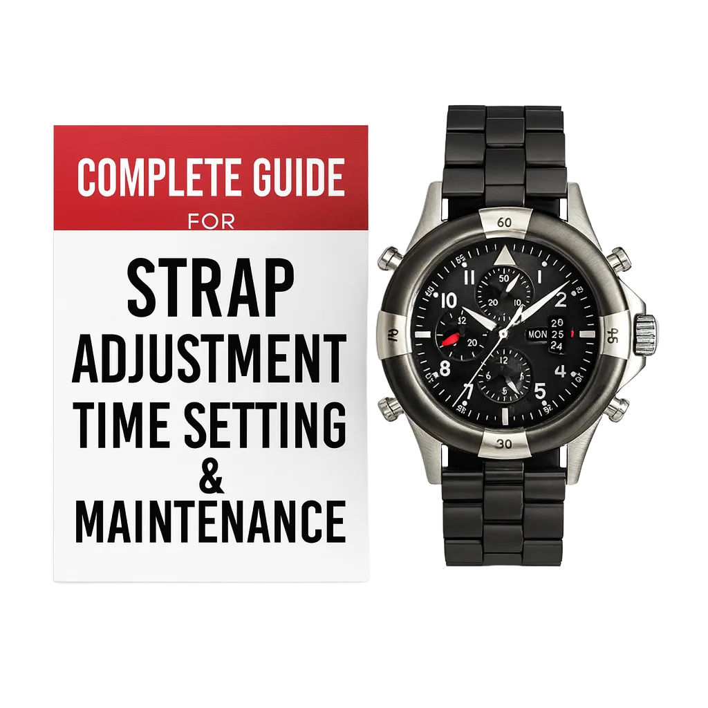 Introducing the Complete Guide for Strap Adjustment, Time Setting & Maintenance — your ultimate companion for keeping your watch perfectly fitted, accurate, and looking brand new.